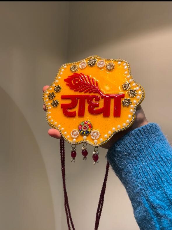 Elegant handcrafted 10-inch resin art piece featuring spiritual typography ✨, subtle marbling 🎨, and pearl embellishments 🤍, perfect for devotional decor 🪔 and meaningful gifting 🎁.